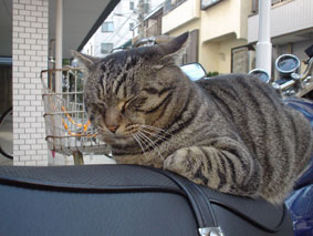 なぜか猫は後ろ向きに乗るんですよね